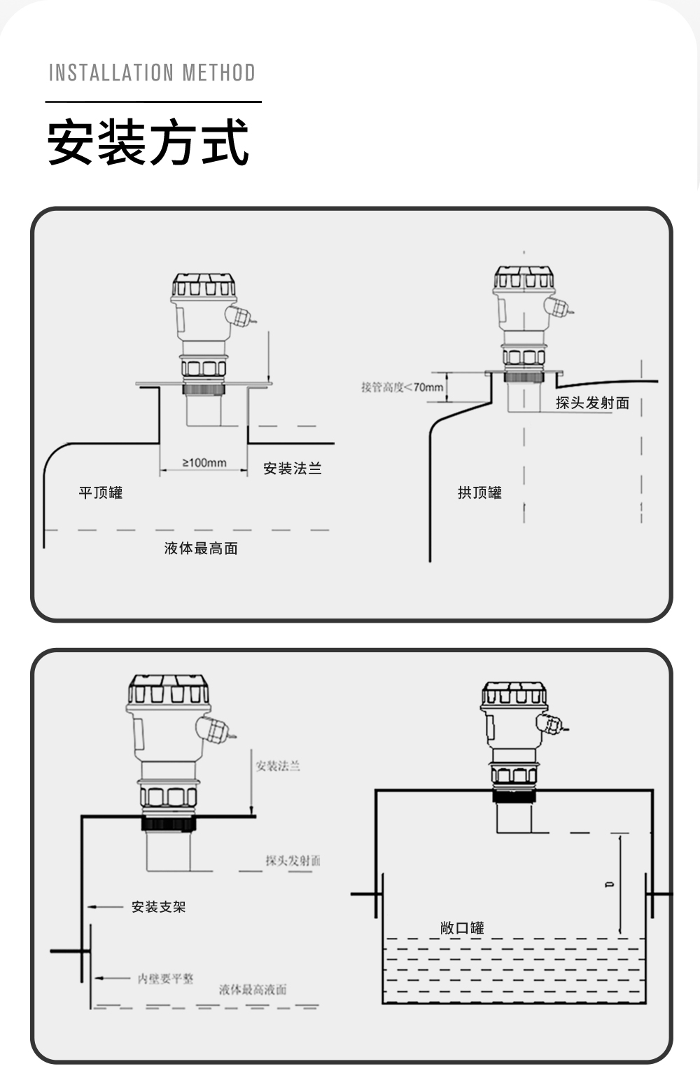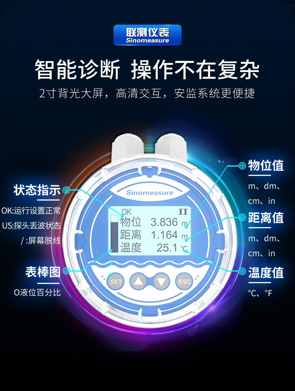 超聲波液位計(測量液位/物位),是一種非接觸式、高可靠性、高 性價比、易安裝維護的液位/物位測量儀器。它不需接觸被測量介質就能 滿足大部分液位/物位測量要求,是本公司具有完全自主產權的新一代超聲波液位計。CN4